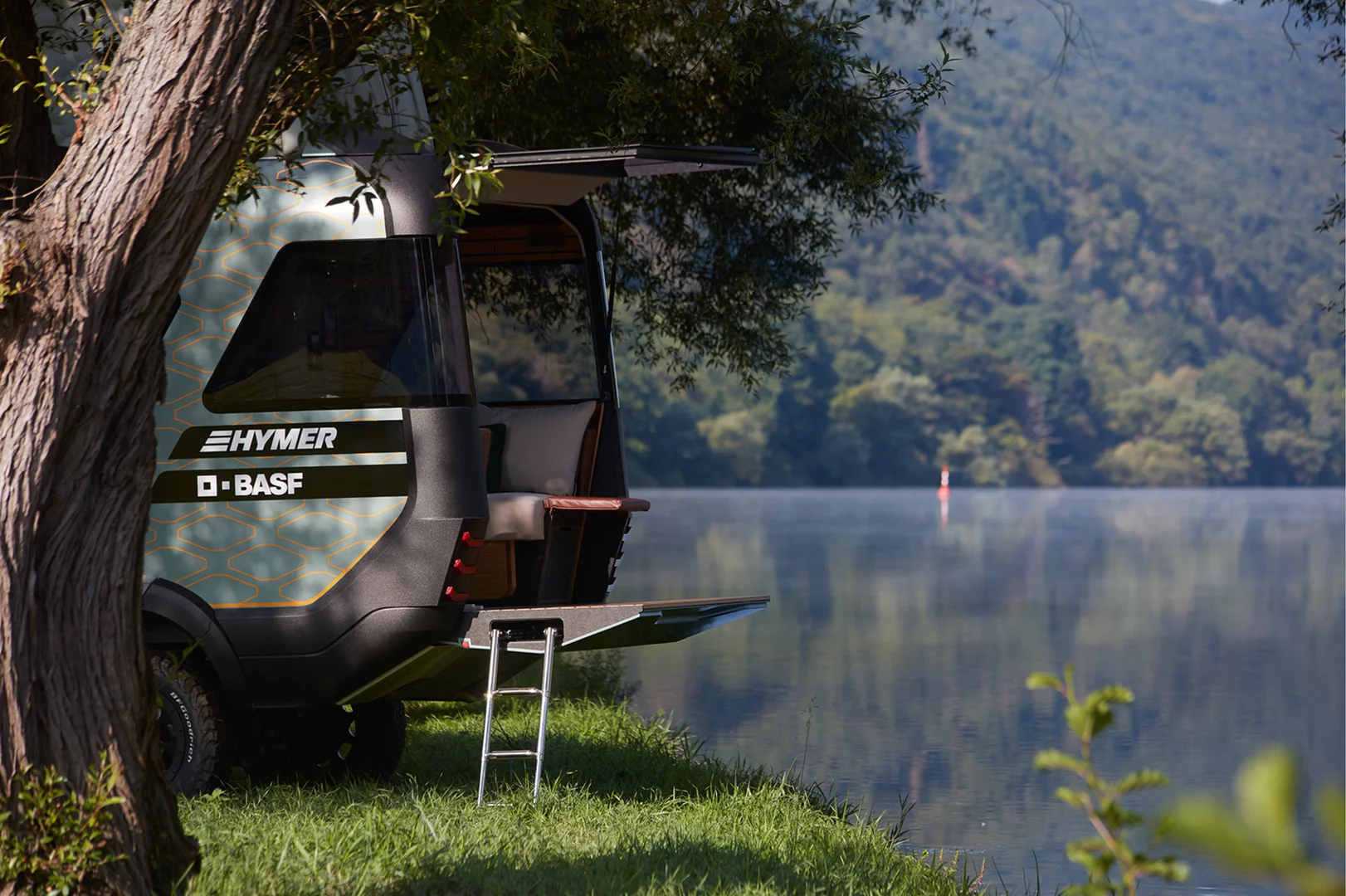 Hymer Mit einer sehenswerten Reisemobil-Studie blickt. Die Reichweite des Konzept-Campers ist allerdings arg eingeschränkt denn viel mehr als 200 Kilometer schafft das Wohnmobil nicht. Mit mehr als 20 innovativen BASF-Kunststoffen und der Entwicklungskompetenz des BASF Creation Centers ist eine neue Fahrzeugklasse entstanden die völlig neue Maßstäbe in Sachen Leichtbau Autarkie Reiseerlebnis und Design setzt.