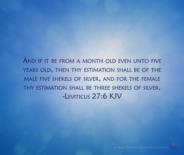 Leviticus 27 6 And If It Be From A Month Old Even To Five Years Old Then Your Estimation Shall Be Of The Male Five Shekels Of Silver And For The Female Your