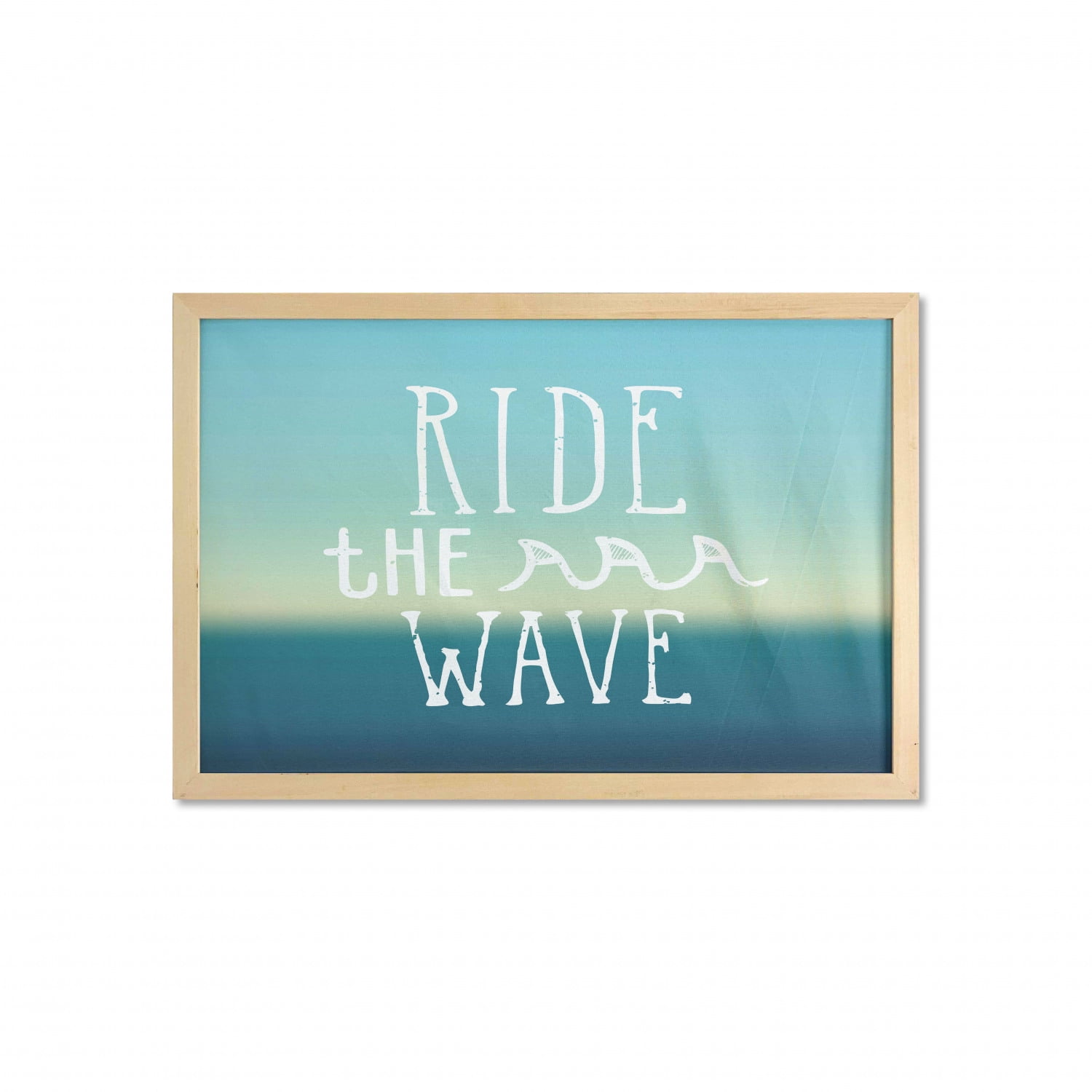 Ride The Wave Wall Art With Frame Ride The Wave Words With Ocean Horizon Background Graphic Art Printed Fabric Poster For Bathroom Living Room Dorms 35 X 23 Mint Green Petrol Blue